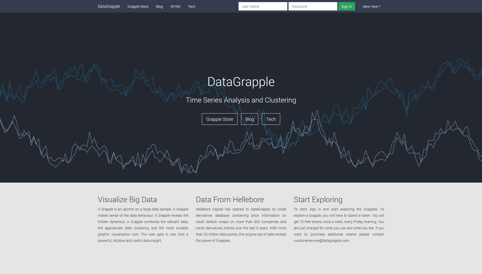 DataGrapple lets you explore supervised and unsupervised clusters of time series. We own a proprietary database of credit derivatives prices since 2006. The database includes over 700 reference entities. The project objective was to characterize the joint behaviour of this large and complex database. Using recent research works, we have designed a robust model using the copula representation of the joint behaviour of CDS. The clusters are very stable over time compared to a standard cluster analysis. We have introduced the Grapple, a user friendly innovation in data representation. A Grapple is an expert best selection of a cluster, a graphic representation and a time series.